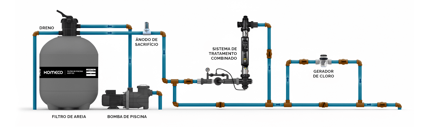 O ‘Sistema de Tratamento Combinado UV-C e Ozônio’ da Komeco oferece diversos benefícios para a sua piscina, incluindo a redução de até 85% no consumo de cloro, o que mantém a água mais saudável.